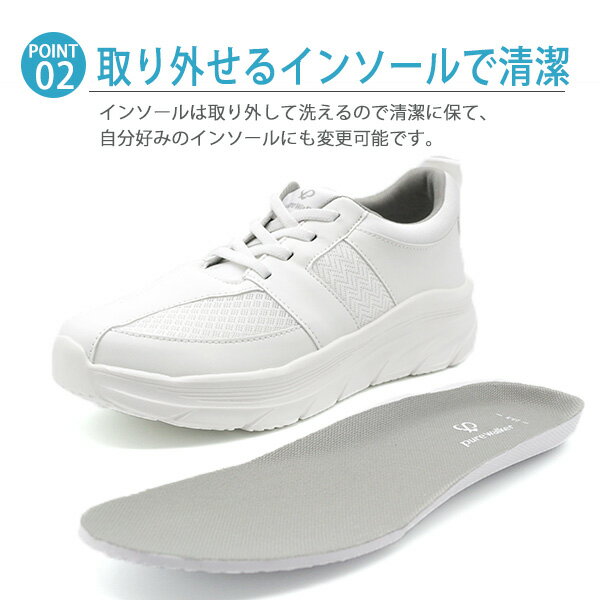 ブランド:pure walker ピュアウォーカー 商品名/品番:PW0601 PW0602 素材:アッパー:合成繊維 合成皮革、アウトソール:合成底 ワイズ(横幅):標準的な2E(EE)相当 取り扱いサイズ:22.5cm 23cm 23.5cm 24cm 24.5cm 25cm 靴の詳細:(23.5cm採寸) ソール高:約 5.5 cm 履き口までの高さ:PW0601:約 11.5cm(ソール部分も含む) PW0602:約 10.5cm(ソール部分も含む) 履き口周り:[PW0601]スニーカーは紐を結んで調節出来ます 重量:PW0601:約 177g PW0602:約 189g カラー [PW0601]スニーカー 白色 [PW0602]スリッポン 白色 おすすめのサイズ 細身、普通の方→「0.5cm小さめ」 甲高、幅広の方→「標準サイズ」 こちらのアイテムの足入れは大きめです。