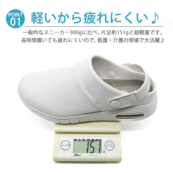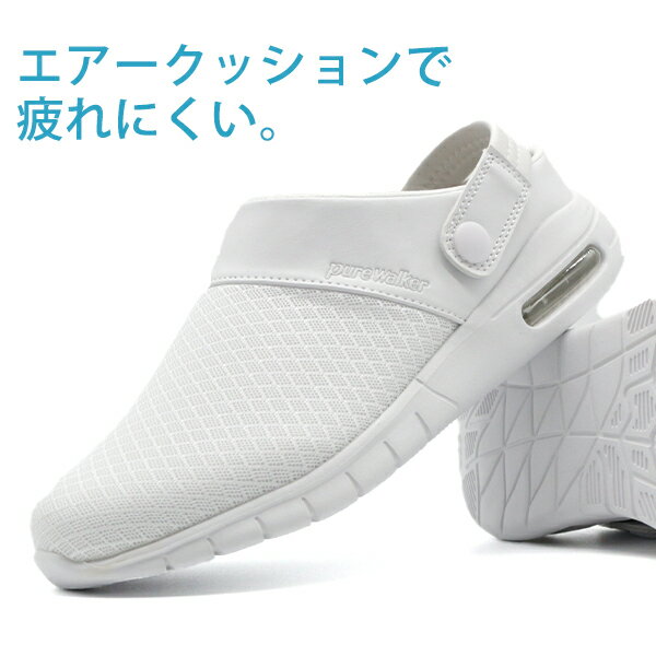 ナースシューズ レディース 靴 スリッポン スニーカー サンダル 白 ホワイト ナースサンダル エアクッション エアー入り 疲れにくい 疲れない 厚底 メッシュ pure walker PW0501 PW0502 【平日3〜5日以内に発送】
