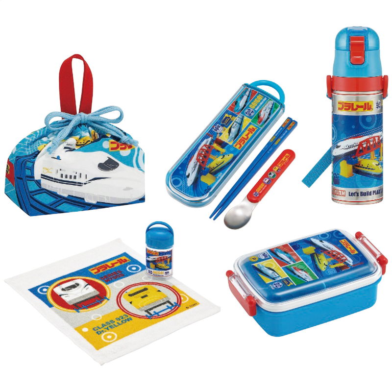 プラレール かがやき 9点セット ダイカットランチボックス 箸&箸箱 巾着 水筒 コップ コップ袋 レジャーシート 抗菌おしぼり ランチクロス