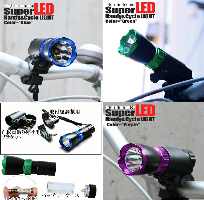 【人気商品!】3W LED搭載■ハンディライトにもなるサイクルライト■ハイパワーサイクルライト マグライト 懐中電灯 LED ライト