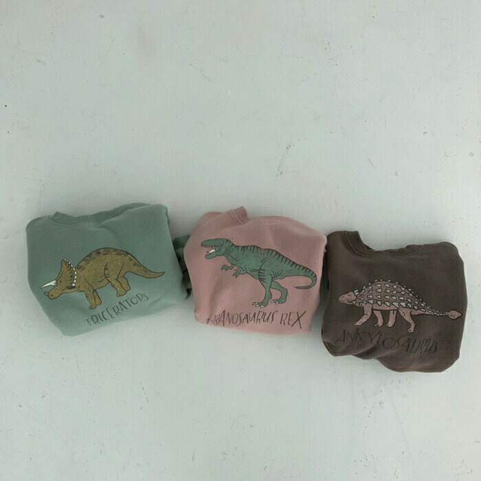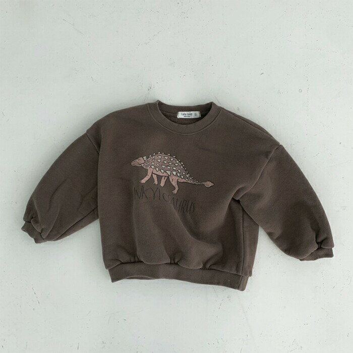 【即納】【KIDS】裏起毛ダイナソープリントTシャツ/女の子/男の子/子供服/子供トレーナー/長袖/ロンT/デーリー/Uネック/ラウンドネック/ルーズフィット/通園/通学ルック【子供服/キッズ/韓国子供服/子ども服/COCORIA/ココリア】【90/100/110/120】【暖か】