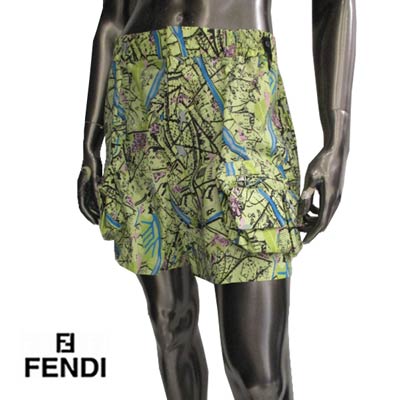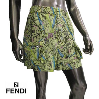 フェンディ FENDI メンズ ボトムス パンツ ショートパンツ セットアップ着用可(トップス別売り) 総柄FENDI MAP・マルチポケット・ジップ部分ロゴ刻印付きマルチカラーガーゴハーフパンツ 緑 FB0749 AIA9 F1FXO (R126500) 221 2022年春夏新作 【送料無料】 【smtb-TK】