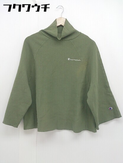 ◇ Champion チャンピオン ロゴ 刺繍 裏起毛 ハイネック 単色タグ 長袖 トレーナー サイズM カーキ レディース 【中古】