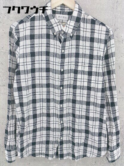 ◇ PLST プラステ Aegean Cotton リネン混 BD 長袖 チェック シャツ サイズM ブラック ホワイト メンズ 【中古】