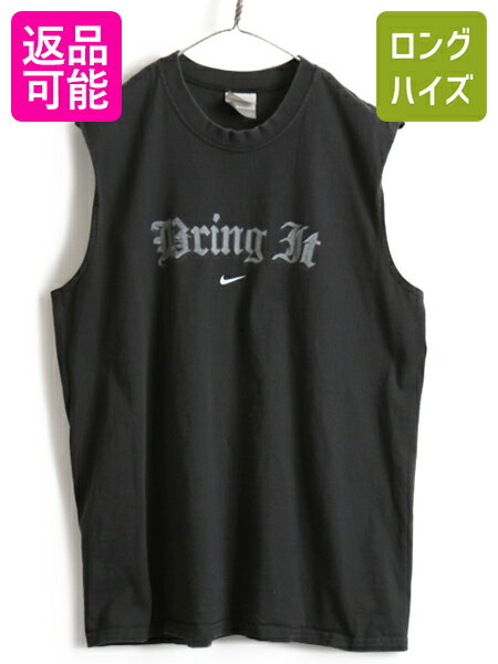 【スーパーSALE 最大半額&P6倍!!】 00s 大きいサイズ XL 人気 黒 ■ NIKE センター スウォッシュ 両面 プリント ノースリーブ Tシャツ ( メンズ ) 古着 ナイキ オールド ロゴT| 中古 ノースリーブTシャツ タンクトップ クルーネック カットソー プリントT ブラック スウッシ