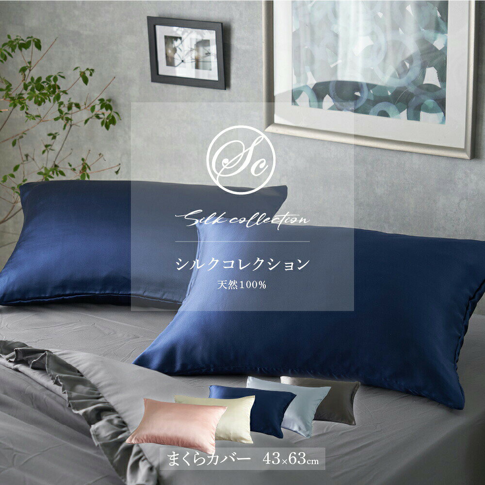 シルク100%の枕カバー 43×63cm ファスナー仕様 まくらカバー ピロ—ケース 天然絹 Silk Collection 吸放湿 静電気制御 防臭 消臭 洗える オールシーズン なめらか おしゃれ 高級感 モダン ミッドセンチュリー シンプル エレガント