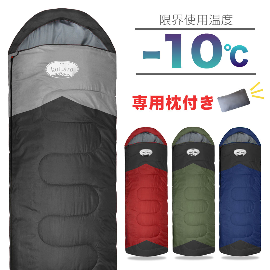 【ポイント10倍 プレゼントあり】 寝袋 コンパクト ダウン キャンプ -10℃ 10℃ 夏 封筒型 シュラフ 枕 キャンプ アウトドア 洗える 丸洗い 洗濯 寝袋枕 枕 高品質 210T 強い 軽量 車中泊 防災 災害 マット 人気 黒 ブラック 紺 ネイビー 緑 グリーン 赤 レッド kot.aro【スーパーセール 10%OFF】【kot.aro】寝袋 シュラフ 枕付き 高品質 -10℃ 210T 封筒型 シュラフ キャンプ 防災 自宅 来客用 アウトドア スリーパー 冬 春 秋 夏 軽量 車中泊 コンパクト 防災セット 洗える メンズ レディース 登山 オールシーズン対応! 生地の素材が良い!210T オールシーズン対応! 収納しやすい! 収納が楽! オールシーズン使いたい! 防災用として備えたい。