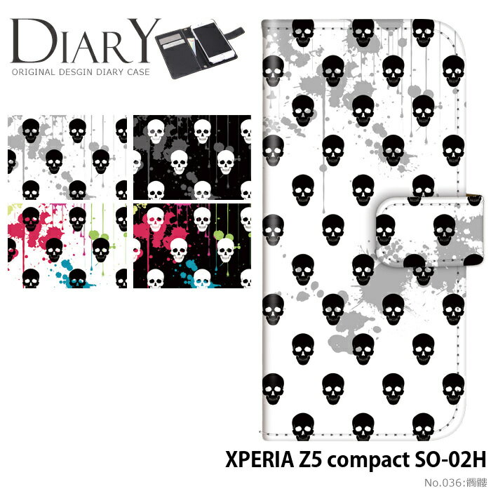 【スーパーセール】 スマホケース XPERIA Z5 compact SO-02H 手帳型 ケース エクスペリア docomo ドコモ デザイン 髑髏 スカル ドット ガイコツ ストラップホルダー
